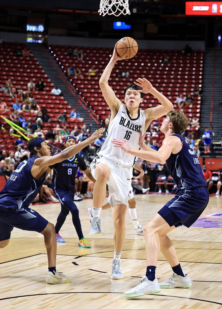 在夏季联赛中,这位新秀的表现迅速引起了广泛关注。他在拉斯维加斯的比赛中给球探和球迷留下了深刻印象,成为今年夏季联赛中最引人注目的新星之一。在对阵鹈鹕队的比赛中,他贡献了15分、4个篮板、2次助攻和2次盖帽,并且三分球6投3中,进一步提升了外界对他的期待。他既能保护篮筐又具备拉开空间的能力,让开拓者在夏季联赛中的进攻更加流畅。他在三分球上的进步——曾被认为是他的最大弱点——使他看起来已经具备了征战NBA的实力。