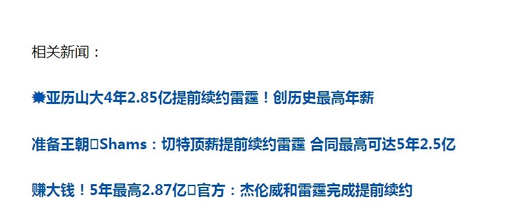 相关新闻>>>雷霆三巨头续约完毕合计8.22亿