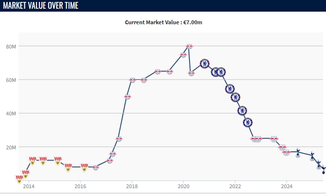 29岁的维尔纳与莱比锡的合同还剩最后一年,但他现在1000万欧的年薪已经成了球队的负担,他的德转身价仅剩700万欧,还不及巅峰的1/10。